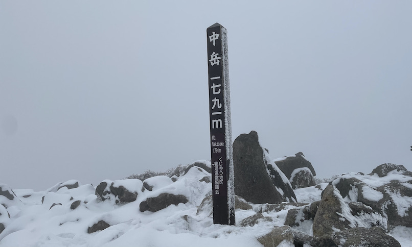 11時30分、中岳に到着。九州本土最高峰の標高1791mです。登山開始から4時間半のタイムでした。